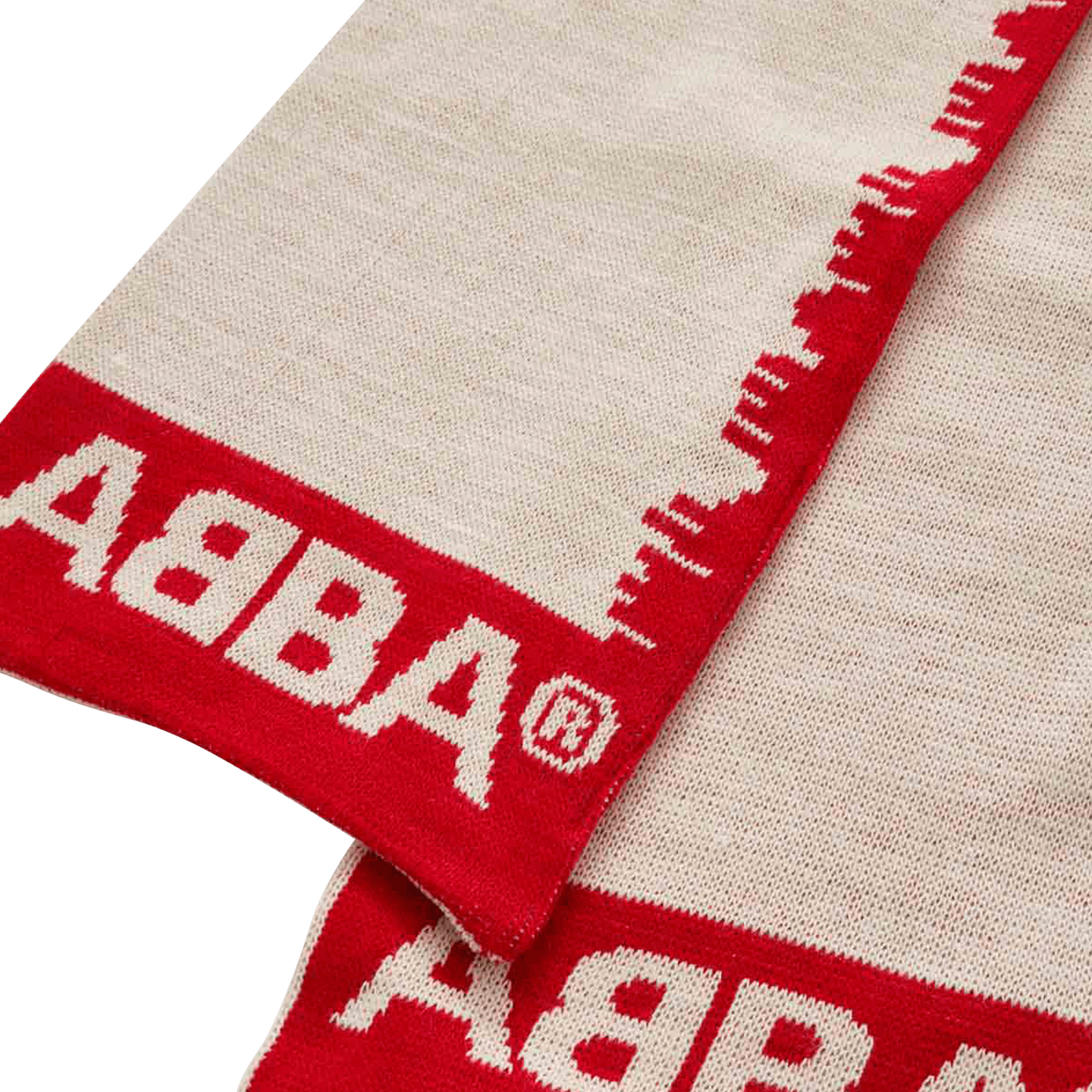 This ABBA knitted scarf in red is the perfect way to stay warm and stylish.