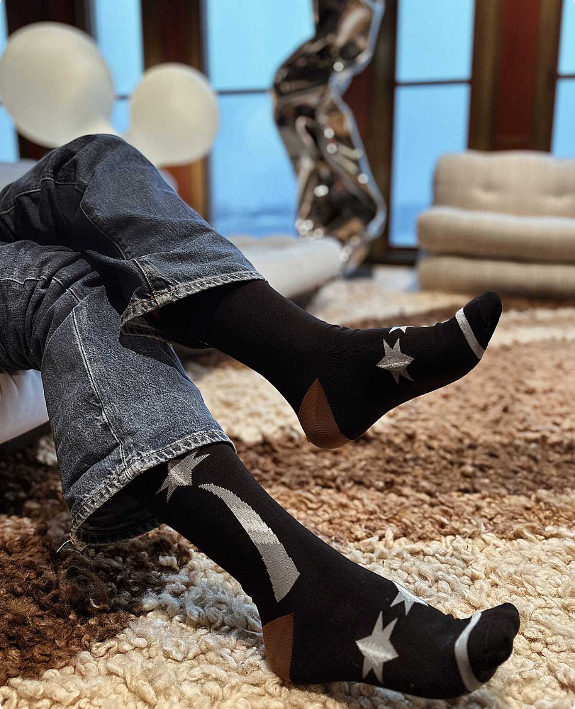 These socks pay homage to Benny's iconic platform boots from Melodifestivalen, the Swedish selection for the Eurovision Song Contest, from 1974.