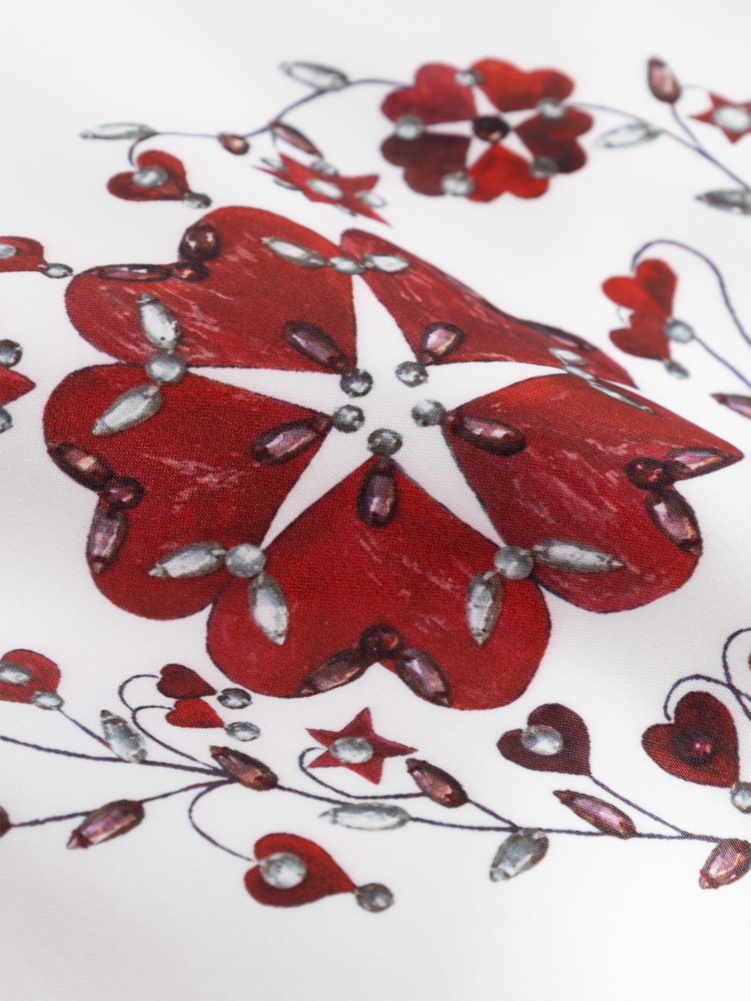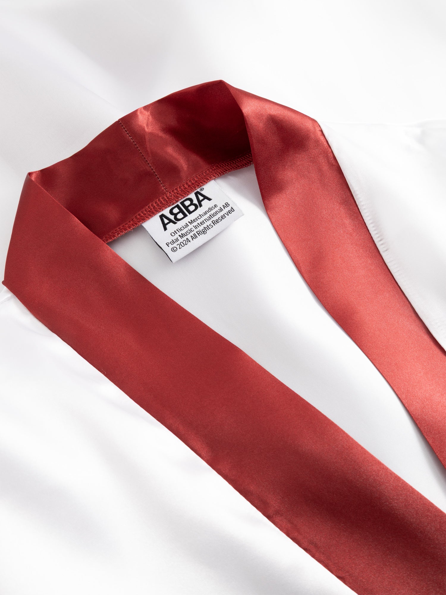 This kimono is a replica of the stage costume worn by Benny during the Japan leg of the tour. Designed by Owe Sandström, the piece reflects a creative fusion of Japanese and Swedish aesthetics. Sandström chose the traditional Japanese kimono silhouette and adorned it with motifs from Swedish flora—specifically, the Columbine, a classic garden flower.