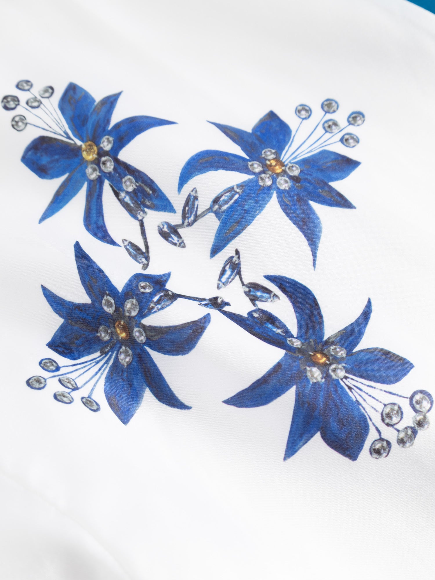 This kimono is a replica of the stage costume worn by Björn during the Japan leg of the tour. Designed by Owe Sandström, the piece reflects a creative fusion of Japanese and Swedish aesthetics. Sandström chose the traditional Japanese kimono silhouette and adorned it with motifs from Swedish flora—specifically, the Columbine, a classic garden flower.