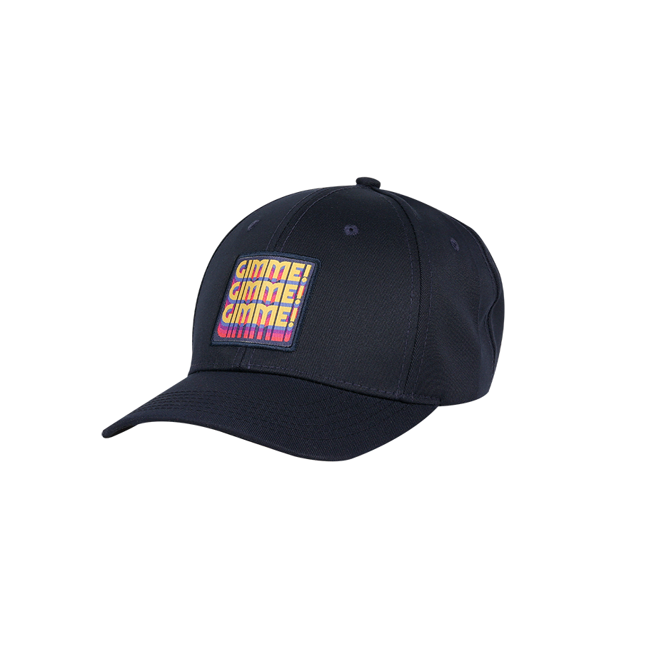 Our navy classic ABBA Gimme gimme gimme cap features a vibrant, multicolored woven badge "Gimme! Gimme! Gimme!" on the front, adding a burst of color that makes it truly stand out. The back of the cap showcases the lyrics "(A Man After Midnight)" in a sleek blue embroidery, making it a must-have piece for any fan's collection.